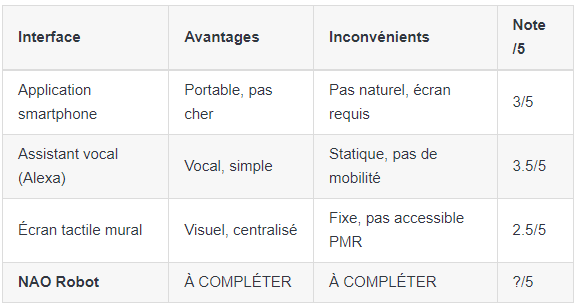 Activité 1.2 : NAO vs autres interfaces domotiques